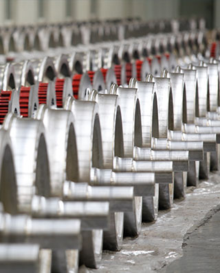 輪類產品 可生產直徑Φ500mm~Φ1250mm的輪類產品,包括高速動車輪,大直徑機車輪、客車輪,貨車輪(含重載);城市軌道交通車輪;工業車輪;機車、風電、石油機械用齒輪坯、...